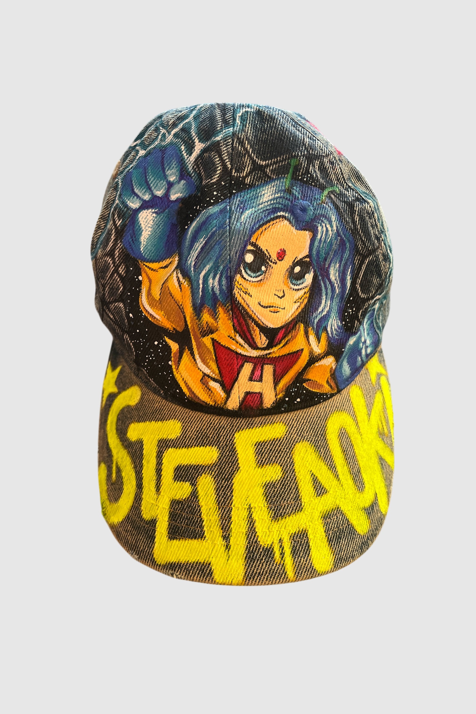 This authenticated, numbered, and collectible one-of-one painted and patched Item was personally customized by Steve Aoki, the Dim Mak Design Team, and/or collaborators using repu rposed garments, materials, or parts;