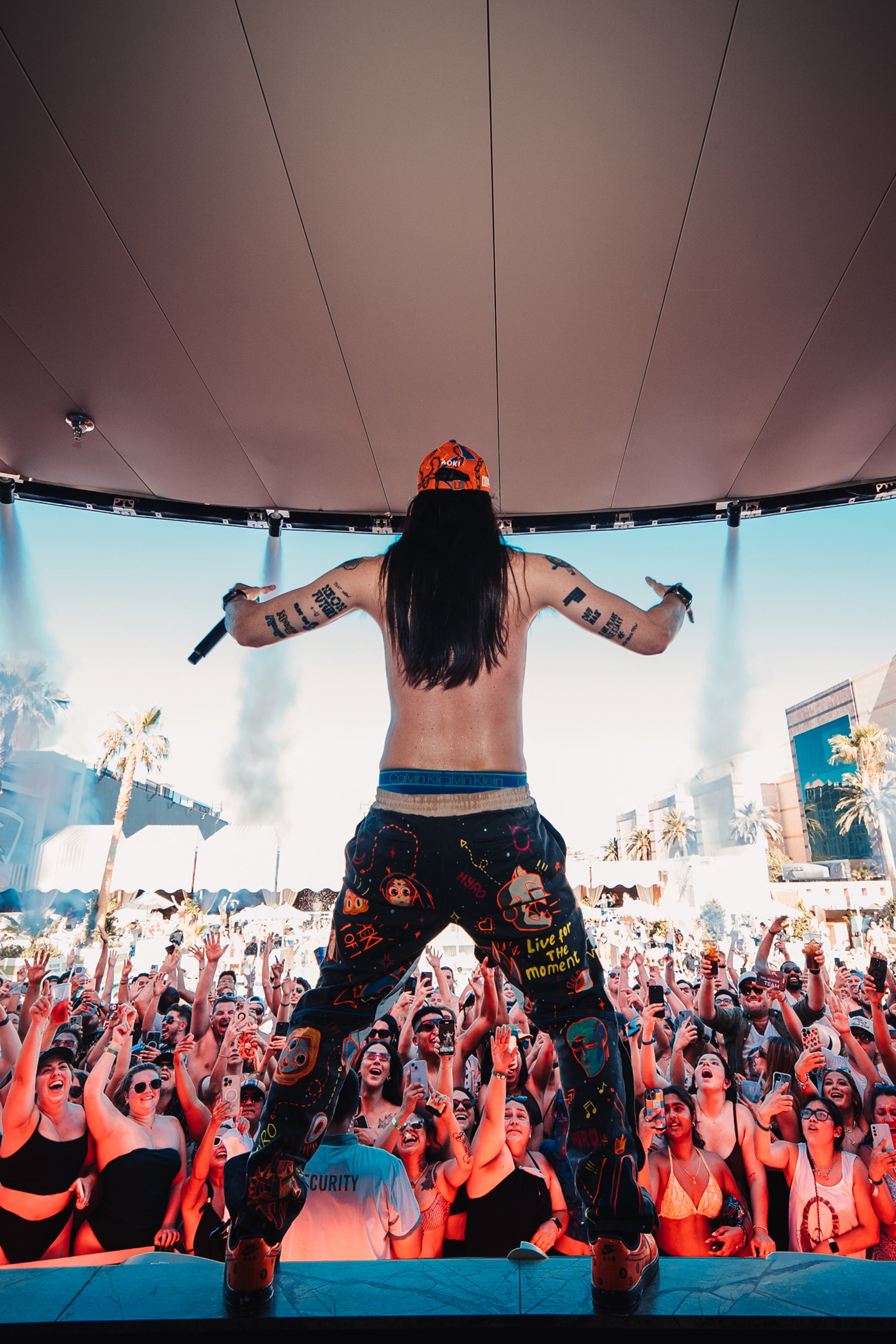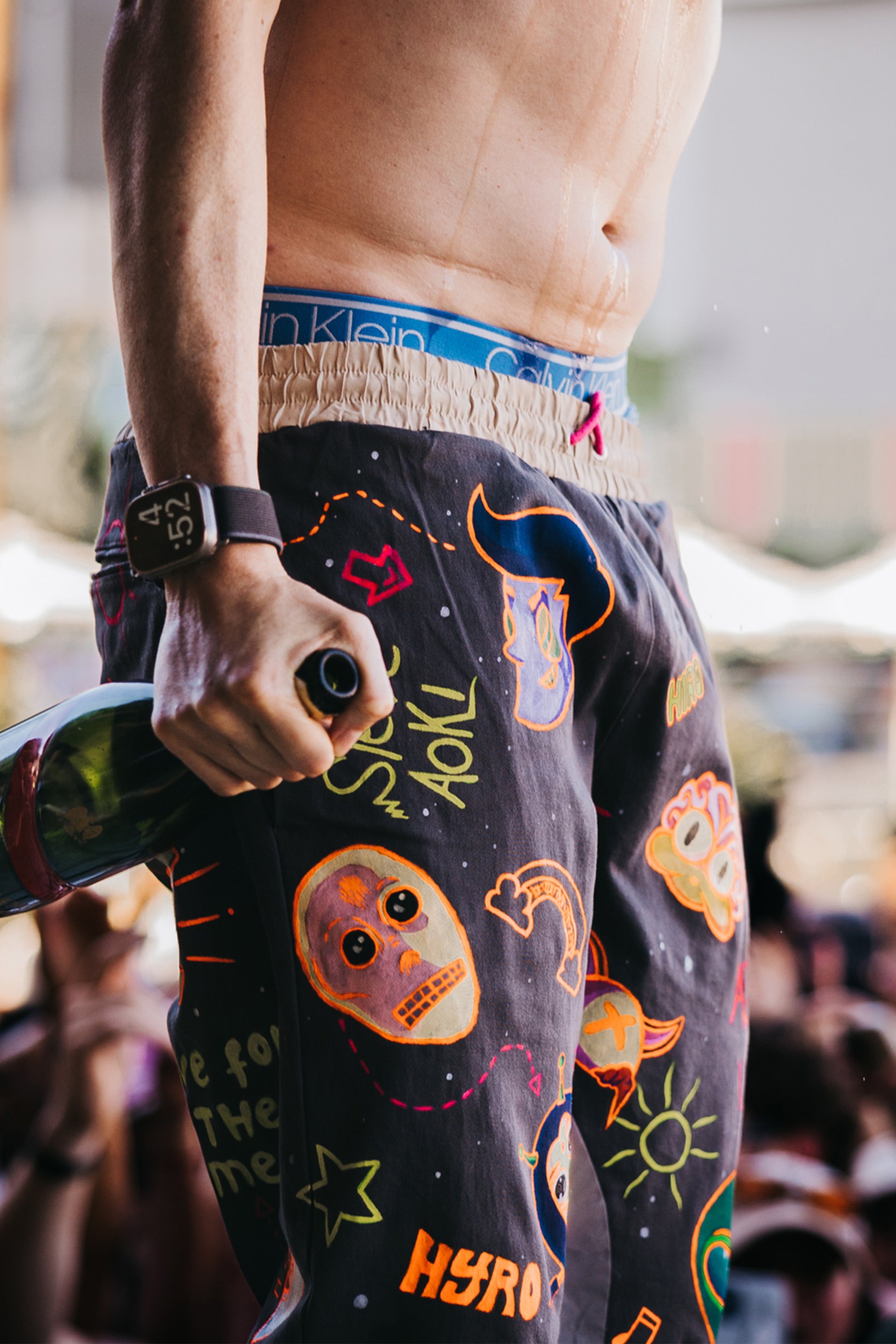 This authenticated, numbered, and collectible one-of-one painted and patched Item was personally customized by Steve Aoki, the Dim Mak Design Team, and/or collaborators using repurposed garments, materials, or parts;