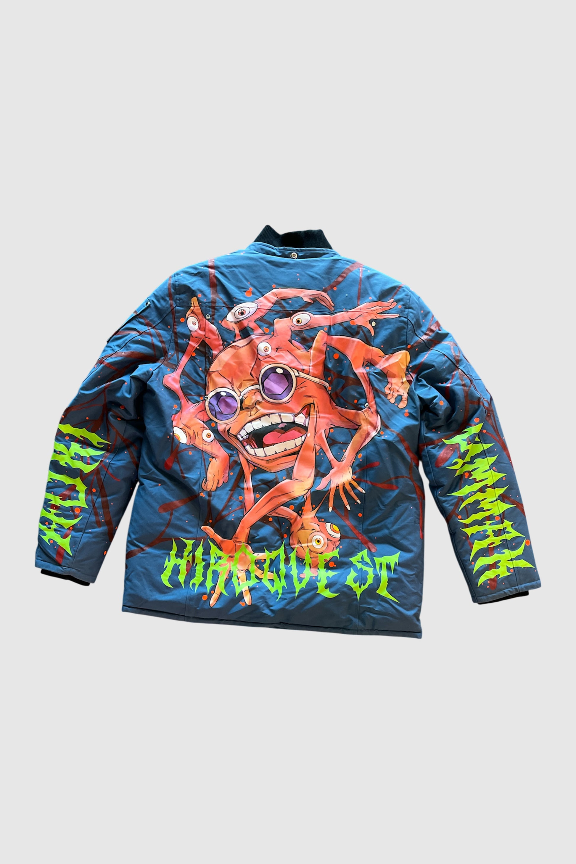 This authenticated, numbered, and collectible one-of-one painted and patched Item was personally customized by Steve Aoki, the Dim Mak Design Team, and/or collaborators using repurposed garments, materials, or parts;