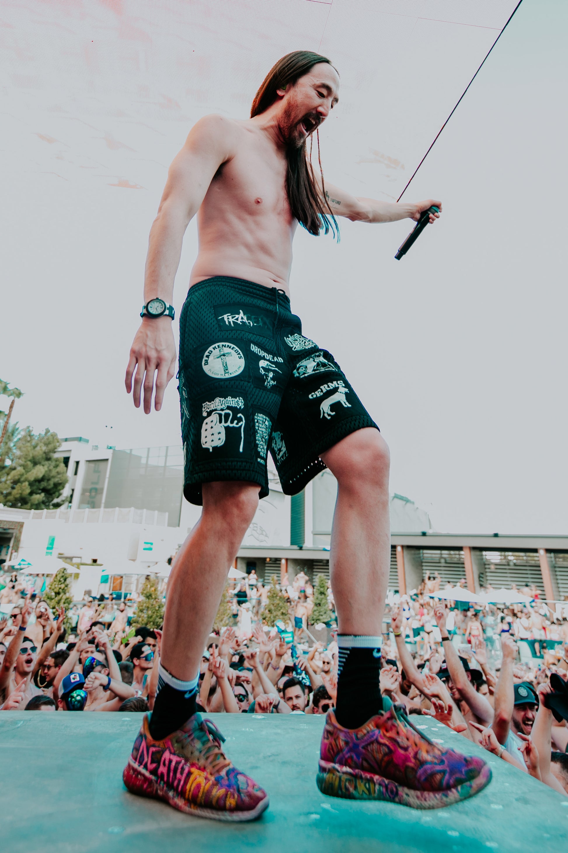 This authenticated, numbered, and collectible one-of-one painted and patched were personally customized by Steve Aoki, the Dim Mak Design Team, and/or collaborators using repurposed garments, materials, or parts.