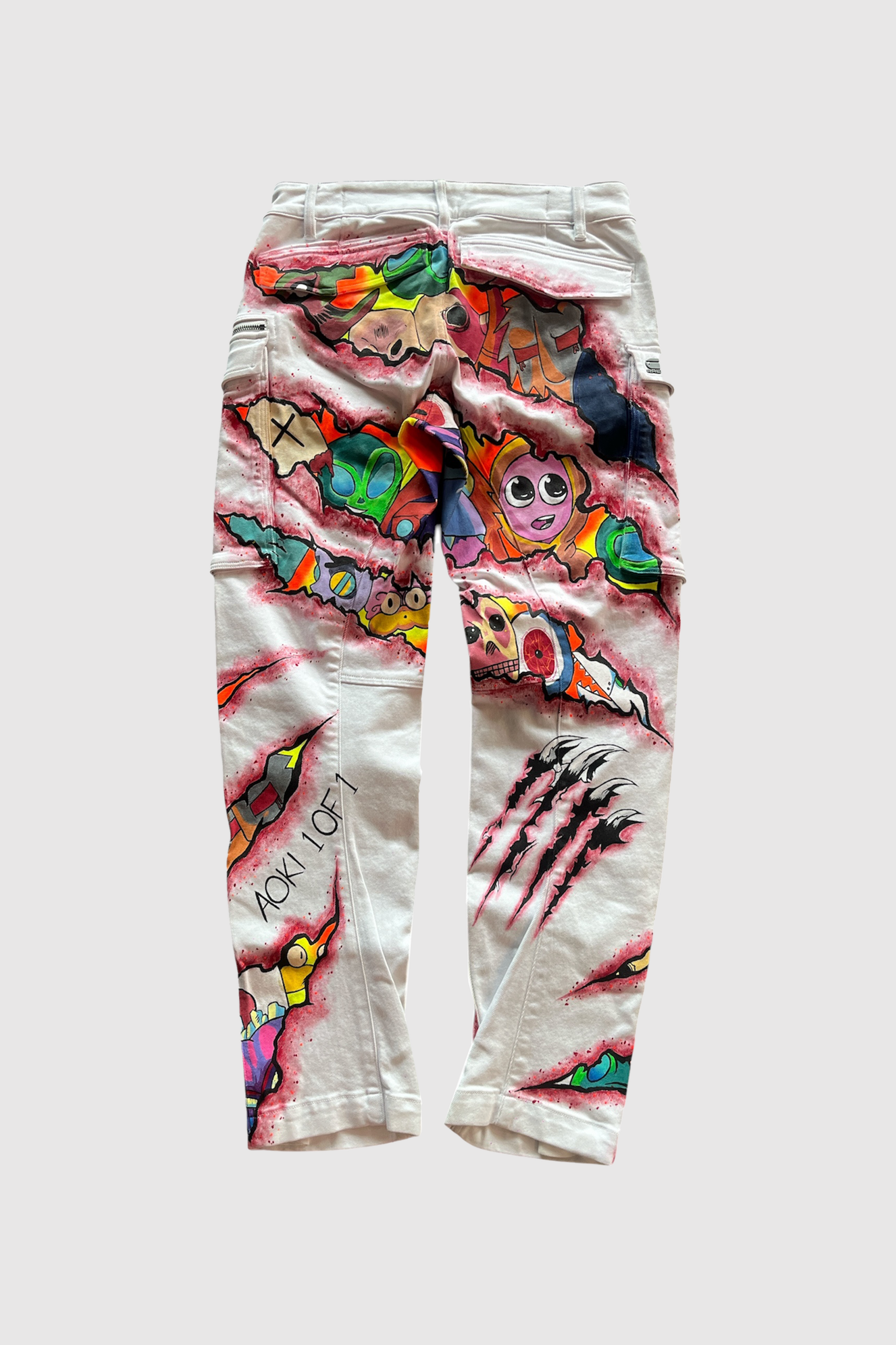AOKI 1OF1 WHITE HIROQUEST CLAWED OUT PANTS #1161