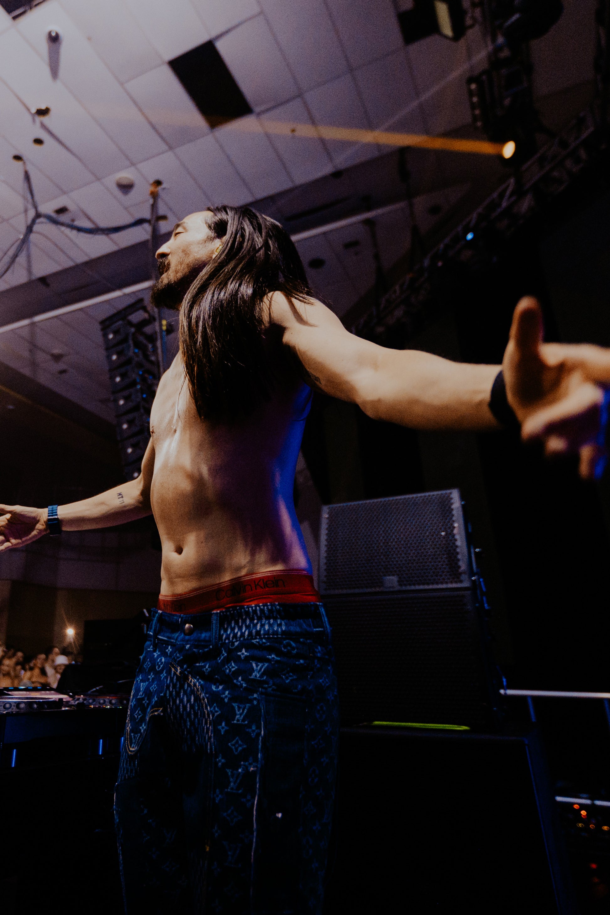 This authenticated, numbered, and collectible one-of-one painted and patched Item was personally customized by Steve Aoki, the Dim Mak Design Team, and/or collaborators using repurposed garments, materials, or parts;