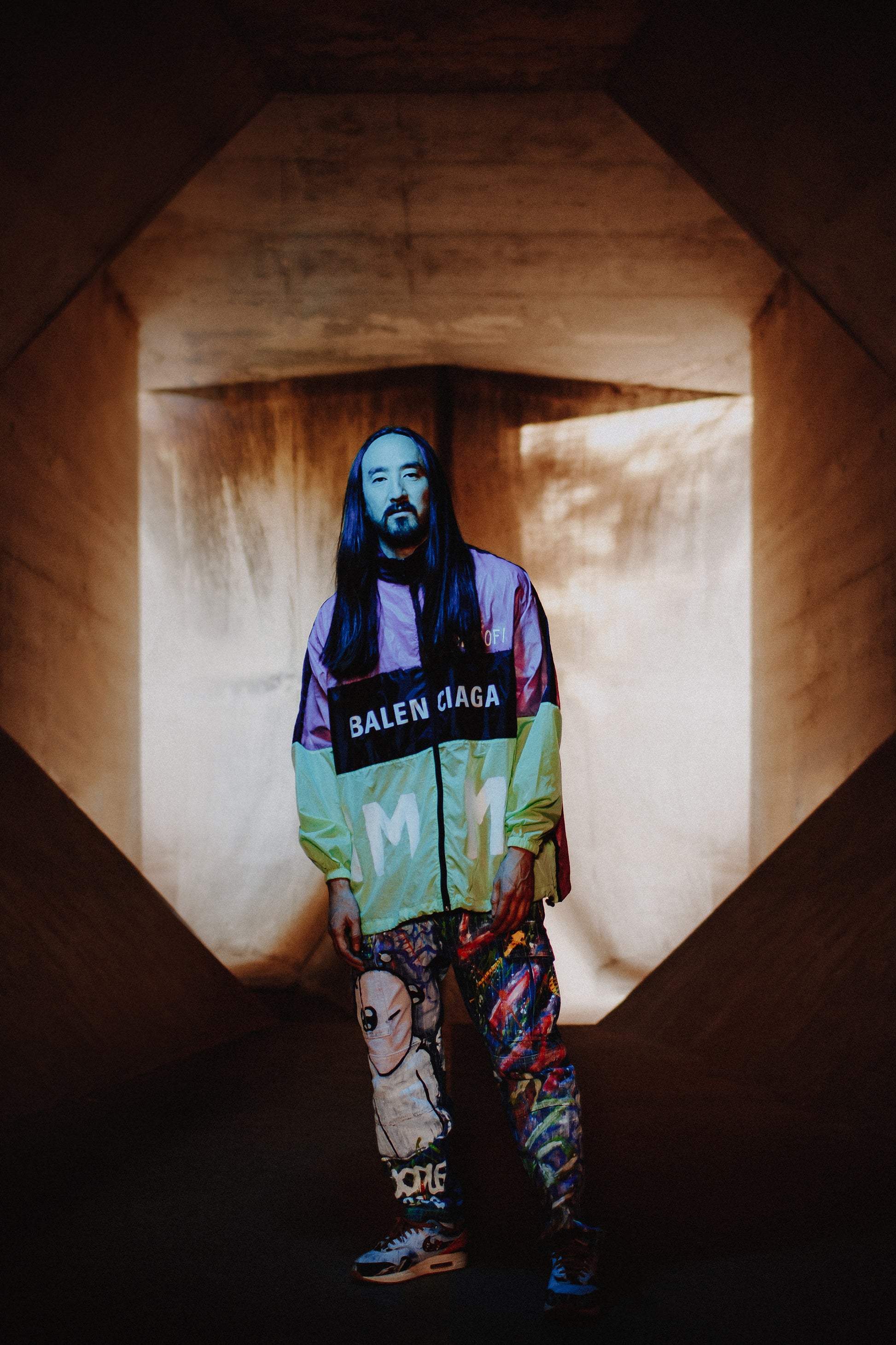 This authenticated, numbered, and collectible one-of-one painted and patched Item was personally customized by Steve Aoki, the Dim Mak Design Team, and/or collaborators using repurposed garments, materials, or parts.