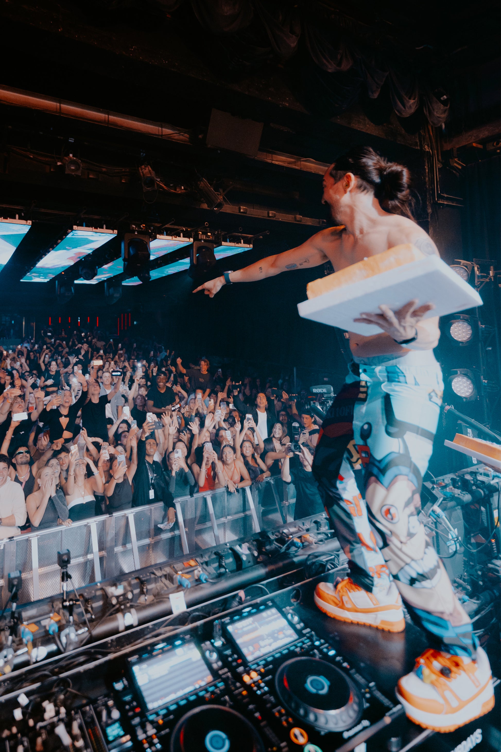 This authenticated, numbered, and collectible one-of-one painted and patched Item was personally customized by Steve Aoki, the Dim Mak Design Team, and/or collaborators using repurposed garments, materials, or parts;