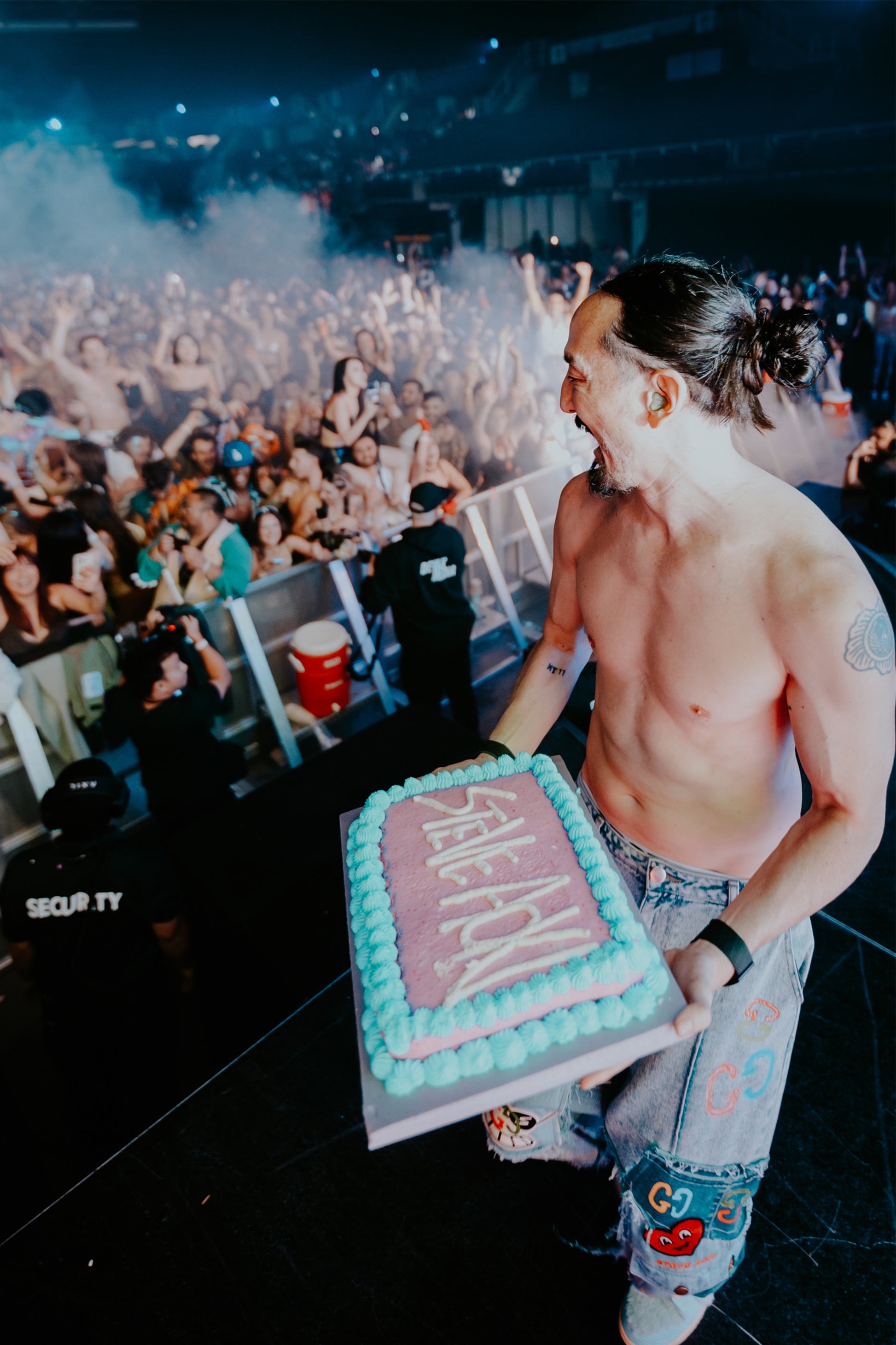 This authenticated, numbered, and collectible one-of-one painted and patched Item was personally customized by Steve Aoki, the Dim Mak Design Team, and/or collaborators using repurposed garments, materials, or parts;